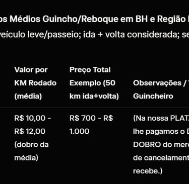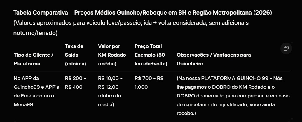 O guincho chegou rapidamente e me ajudou em uma emergência. Excelente serviço!
